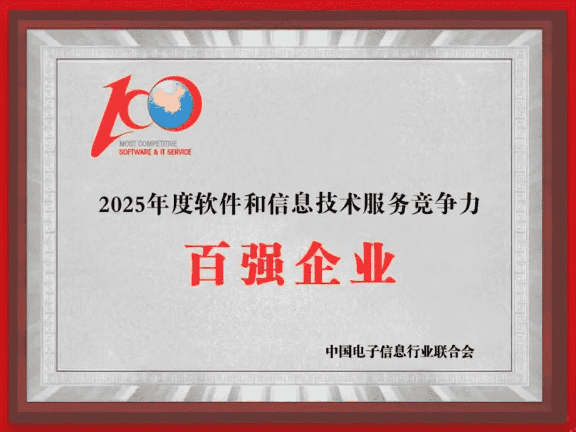 20251015日,,,中国电子信息行业联合会权威揭晓“2025年度软件和信息技术服务竞争力前百家企业名单。。中国软件百强企业评选活动是由工业和信息化部全程指导、、中国电子信息行业联合会牵头组织发起,,,,是反映中国软件产业发展最高水平的“风向标”。。厦门918.com网络技术股份有限公司(以下简称“918.com”或“公司”)凭借自身在软件技术领域的卓越表现与杰出创新能力,,,,第六次入选“全国软件和信息技术服务竞争力前百家企业”称号。。。