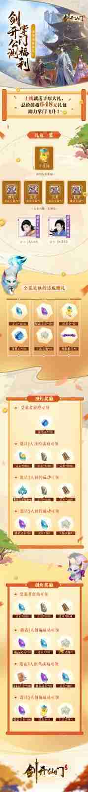 游戏为大家准备了海量的福利,,包括上线即可获得的全渠道预约礼包、、、十连抽等福利,,输入密令“JK666”、、、“JK888”即可领取紫色弟子,,达到金丹期后还有功法宝箱可领,,,助力全宗上下实力提升……所有奖励总价值超过648元,,,而邀请好友一起体验,,,,更可以获得额外的奖励哦~